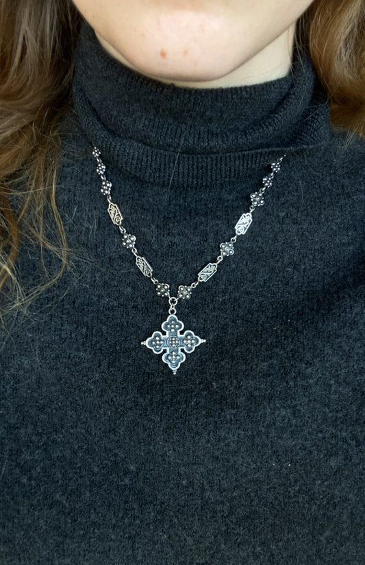 Byzantine Bottony Sterling Cross Necklace