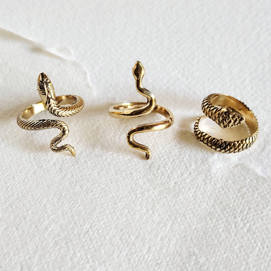 Brass snake serpent cobra ring adjustable 3 styles handmade