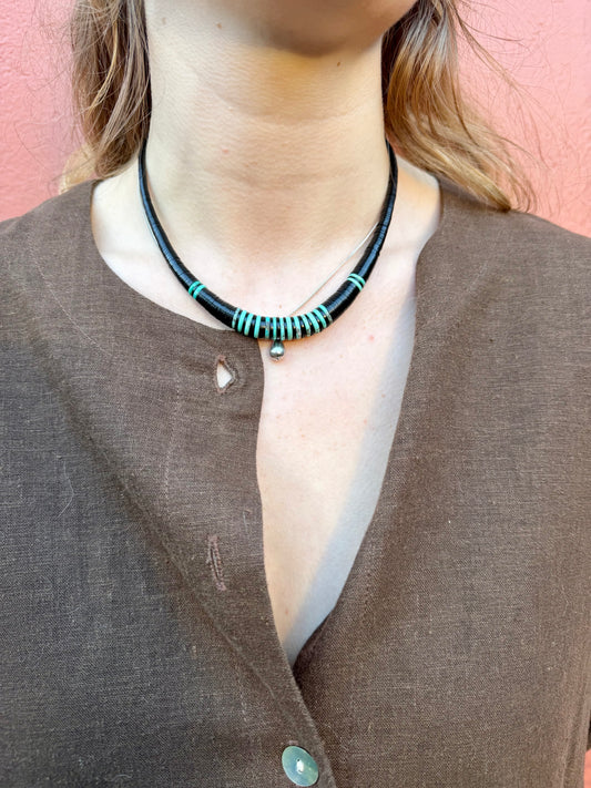 Turquoise & Black Jet Heishi Bead Necklace SDP Kewa