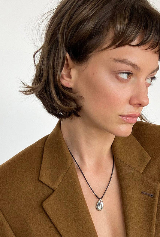 Small Pebble Pendant Necklace Sterling Silver Cord