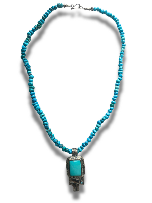 Turquoise Beaded Necklace with Sterling Silver Hummingbird Pendant