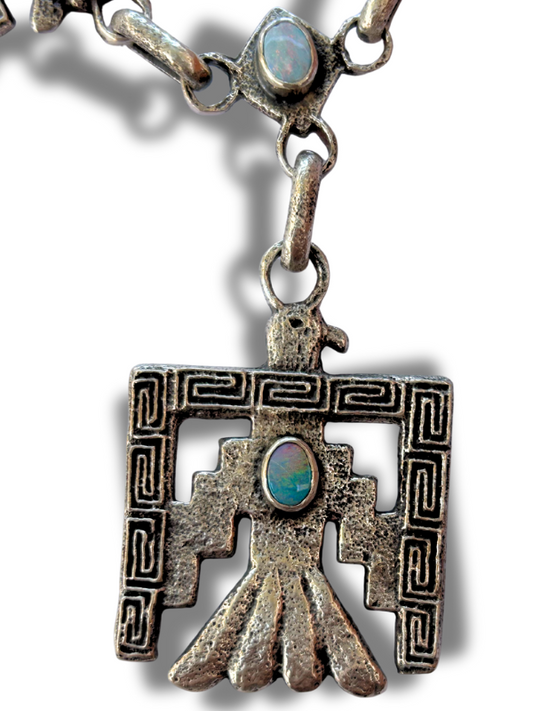 Gilbert Dino Garcia Tufa-Cast Sterling Silver Thunderbird Necklace