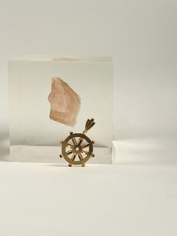 Inspired by the guiding force of the sea, "The Helm" 14K gold charm symbolizes leadership, direction, and control. This finely crafted charm takes the form of a ship's helm, with intricate detailing that evokes the timeless role of the captain at the wheel, steering through life's journey.