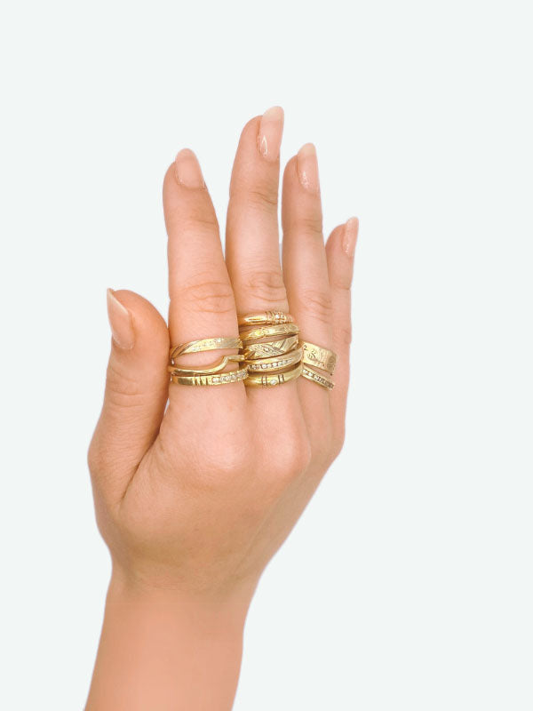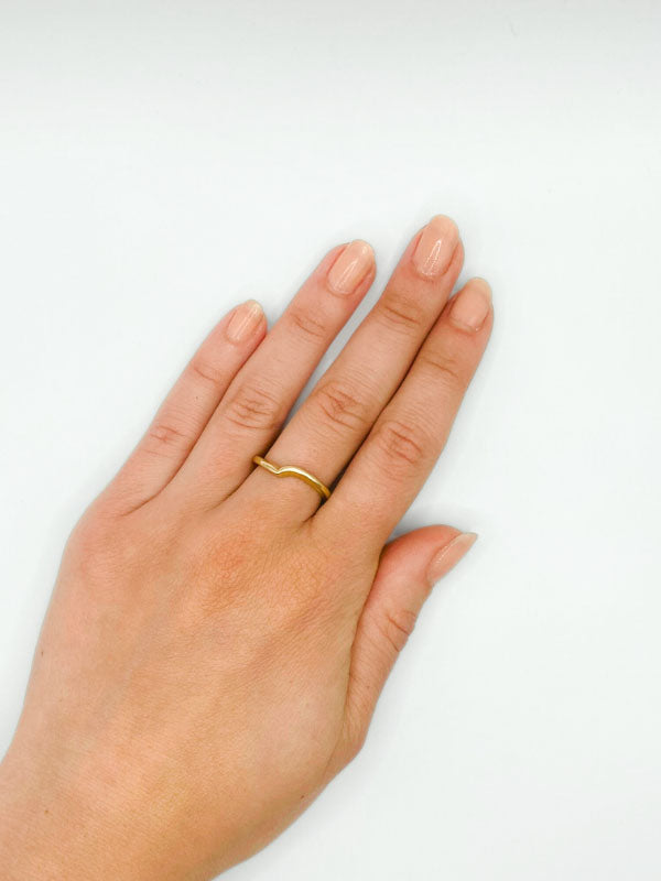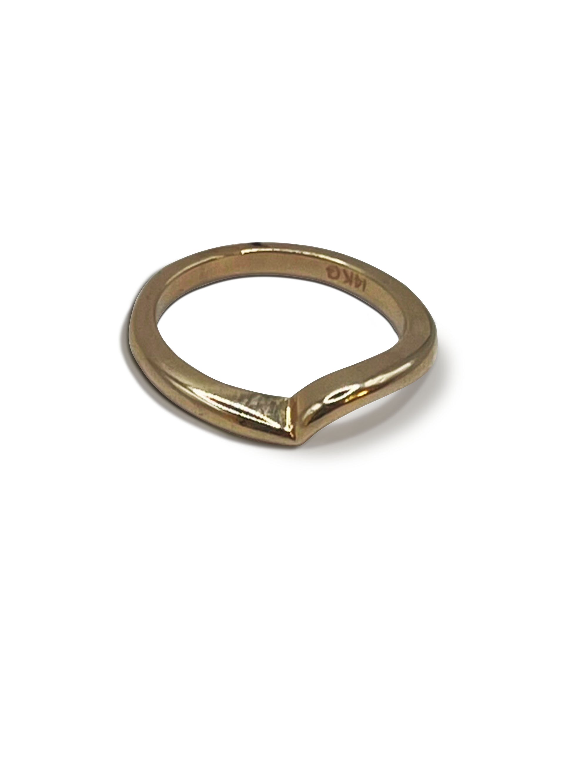 Asymmetrical, wave band. Contemporary design. 2.3MM- 14K yellow gold- size 6.75