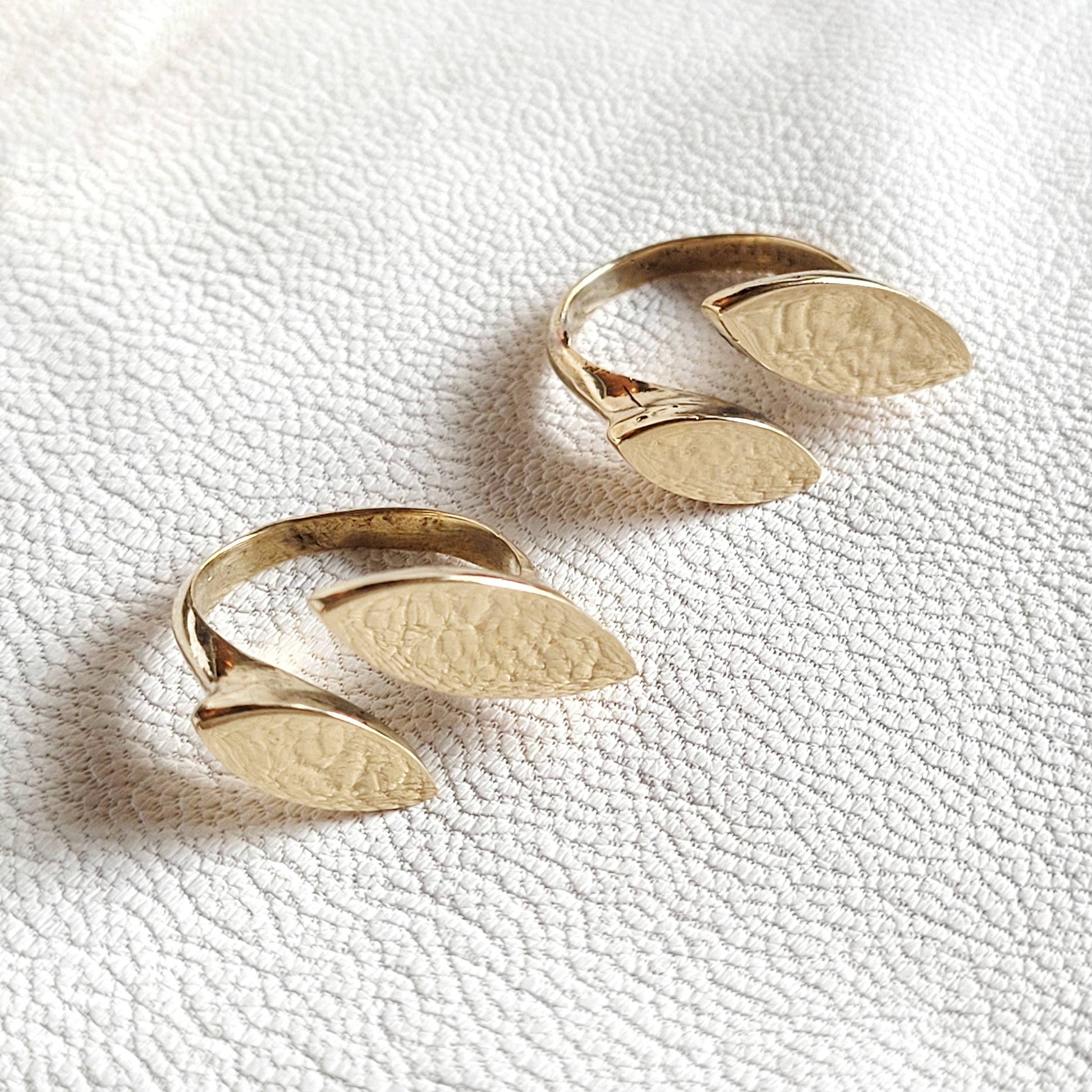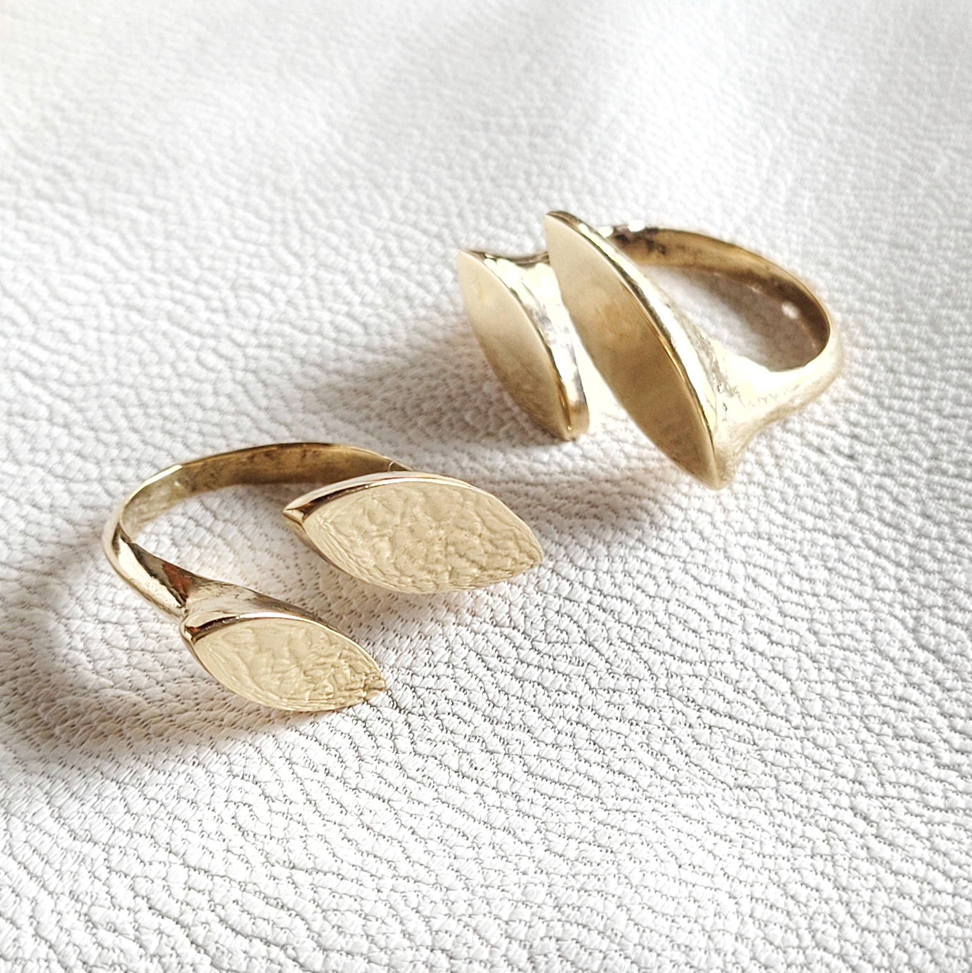 Bold chunky with one polish and one raw hewned side brass ring size adjustable and handmade.