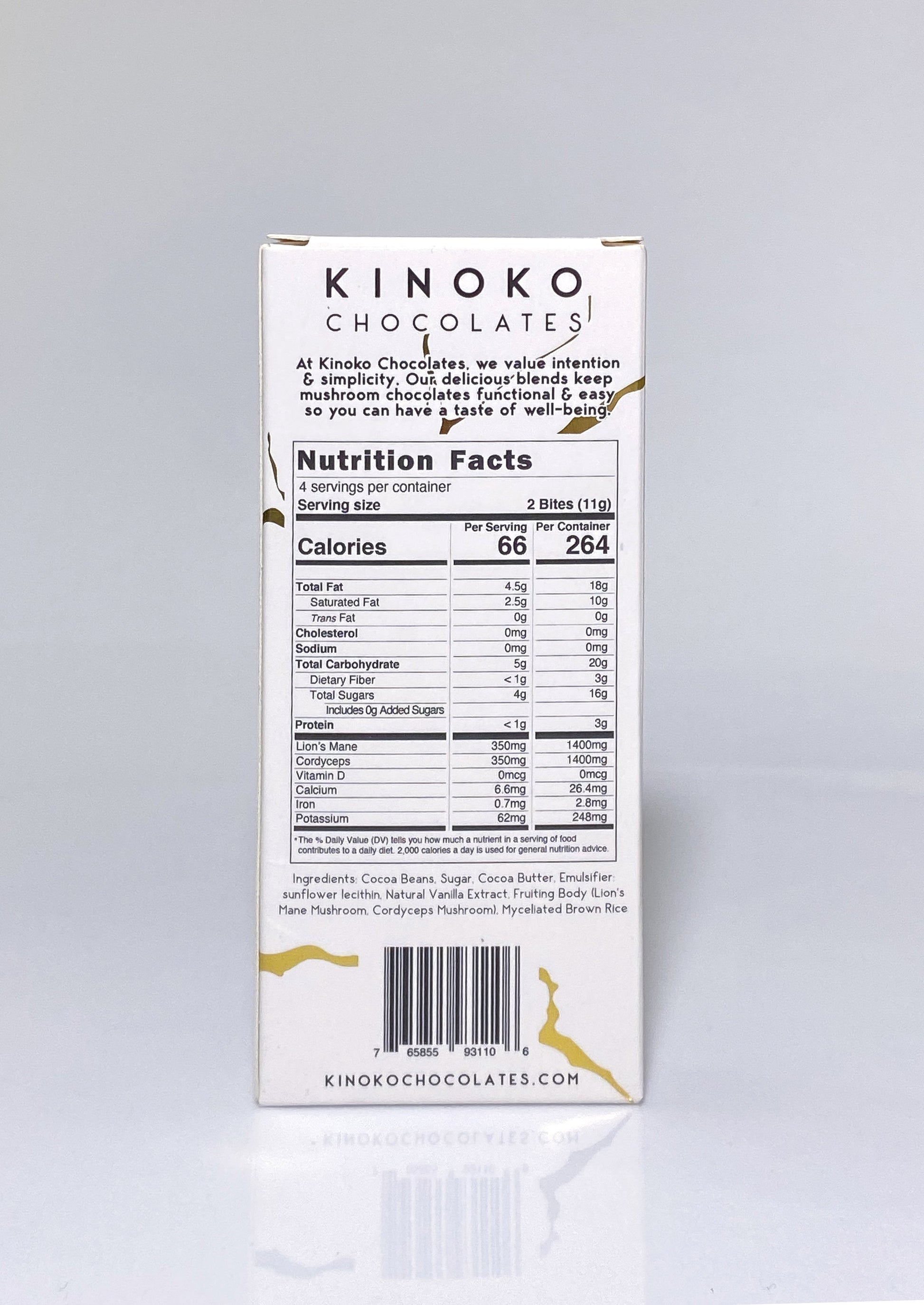 Indulge in the perfect combination of a rich smooth chocolate and two extraordinary superfood mushrooms, Lion's Mane and Cordyceps. Our Lion's Mane and Cordyceps Chocolate Bites are a delicious and nutritious treat designed to enhance your well-being while satisfying your sweet cravings.