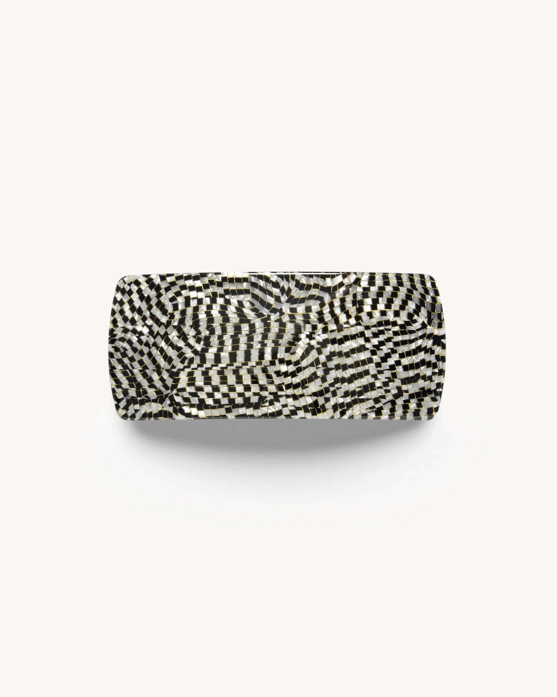 Handcrafted Italian acetate barrette with a reinforced spring clasp. Securely holds medium-to-large volumes of hair of all types and textures.