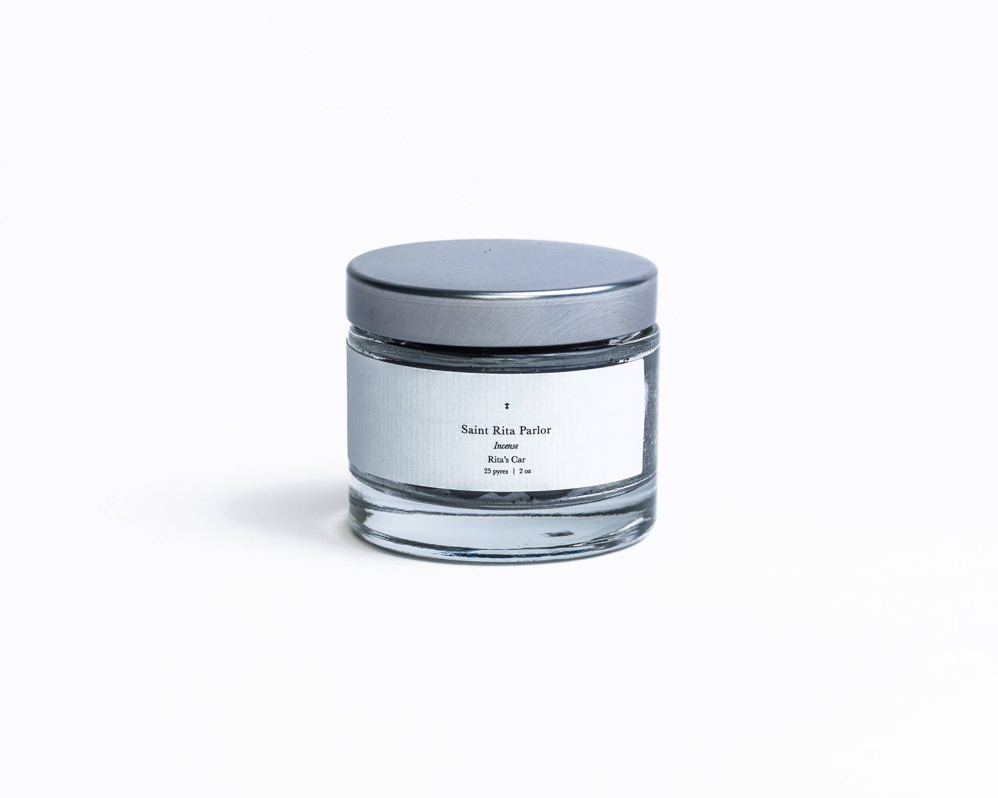 Saint Rita Parlor presents Rita's Car, an incense that embodies the essence of our brand. Each pack includes 25 pyres, each 2oz., designed to fill your space with an enchanting aroma. Derived from a blend of rare and organic essential oils, this fragrance captures the spirit of our founder's late grandmother, Rita. Handmade in Los Angeles, California, our incense is a testament to our dedication to quality and craftsmanship. Enjoy the transformative power of scent with Saint Rita Parlor.