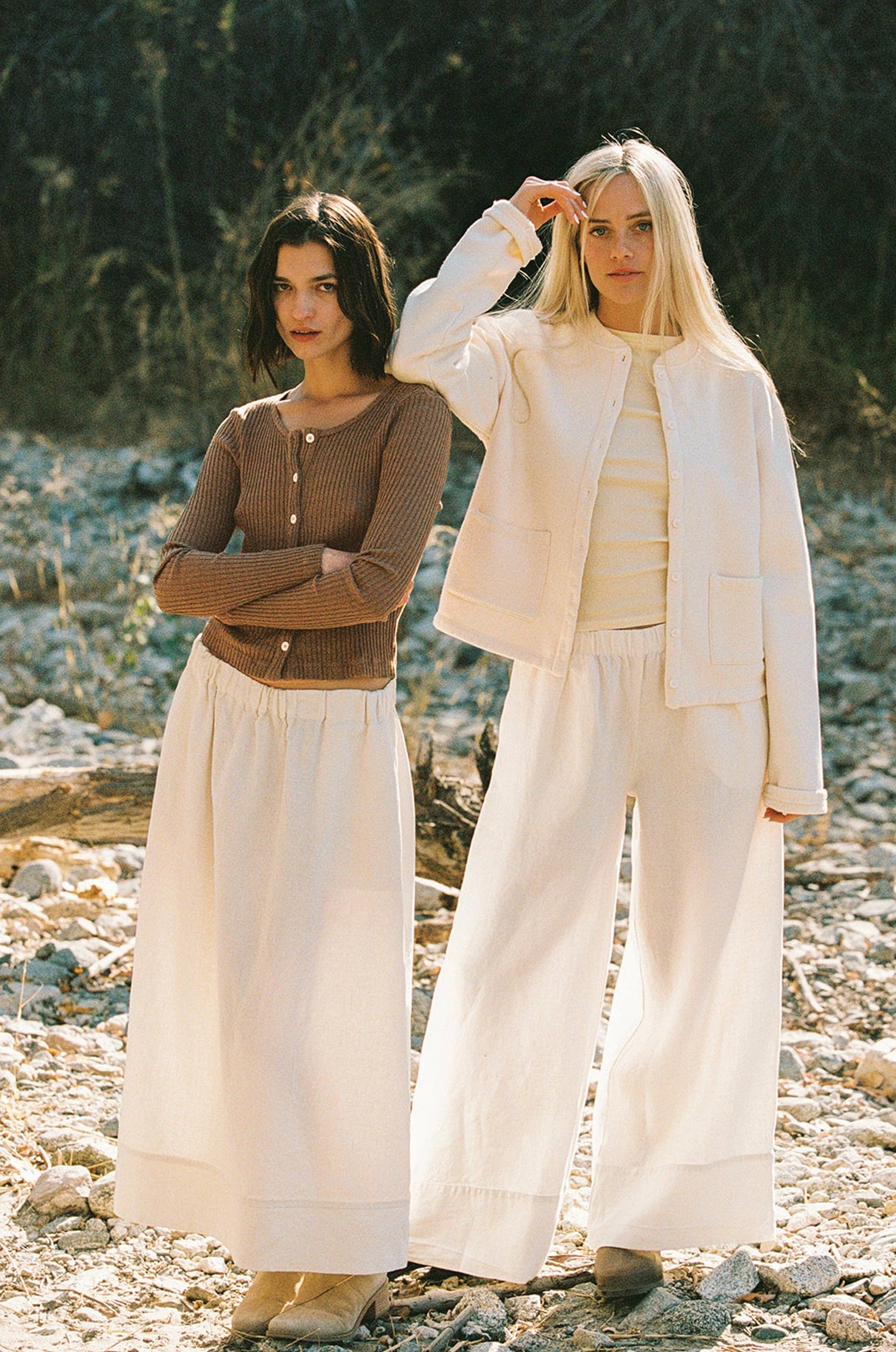Both models wear size S/M.