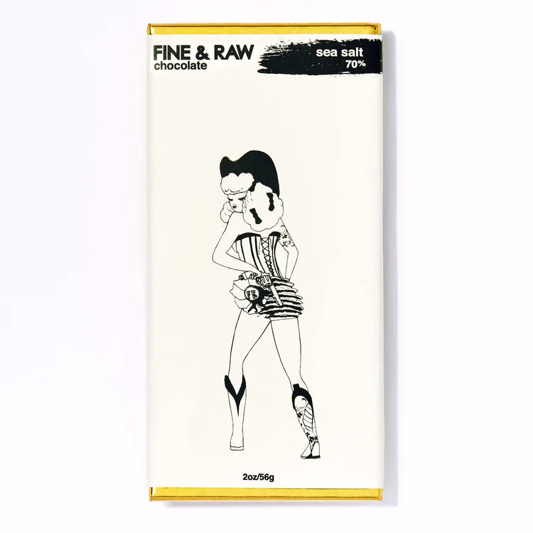 For the salted chocolate lover: welcome home. Made with 50% roasted and 50% raw cacao, this 70% dark chocolate bar is topped with just enough sea salt to open up the incredible cacao flavor. 2oz