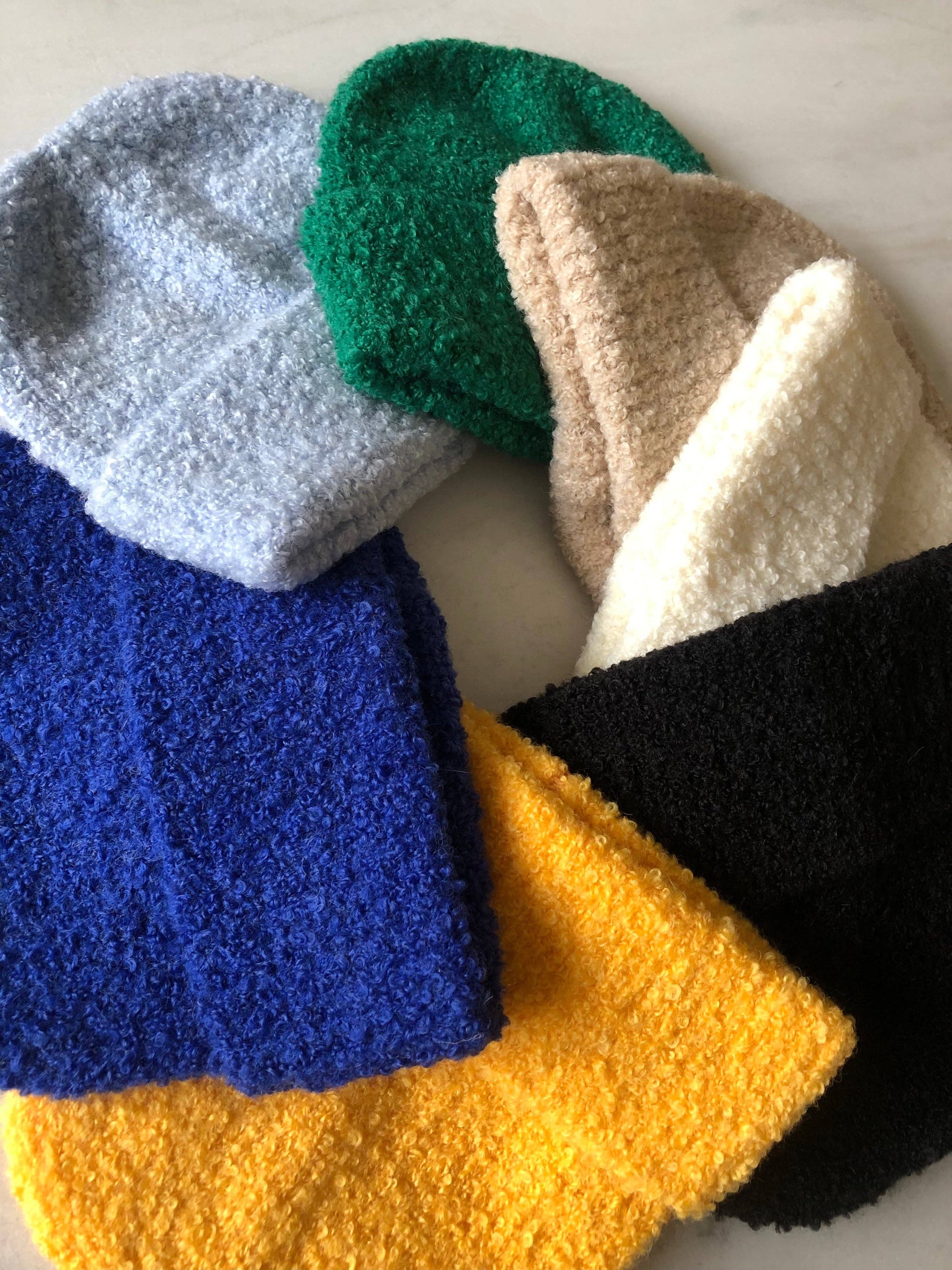 Cozy, plush, and full of personality, our Wool Bouclé Beanie is crafted from the same signature wool blend used across our fuzzy winter accessories, but knitted with a bouclé yarn that adds even more softness, texture, and luxurious high pile. The result is a beanie that feels incredibly lofty, bouncy, and warm, with a beautiful fuzzy surface you’ll notice the moment you touch it.